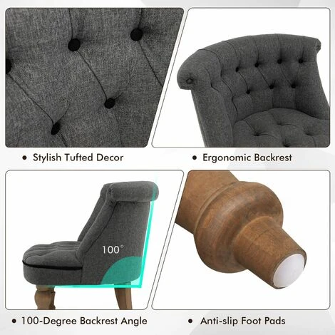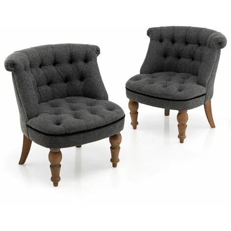 Our 2 pcs accent chairs will be an ideal addition to your living room, bedroom, study or reception room. Our sofa chairs have stylish tufted decor, wing backs with horn shape and calabash-shaped legs as well as curved legs, making them more attractive. You can use them as your accent chairs, club chairs, corner chairs, reading chairs or decorative chairs. Besides, solid frame and beech wood legs keep them durable and stable. Anti-slip foot pads add more stability and avoid floor scratches. What’s more, breathable polyester fabric and soft sponge filling help to create a comfortable seating area, enabling you to enjoy a cup of coffee or chatting time. Moreover, to save your time and energy, our slipper chairs are super easy to assemble and maintain.