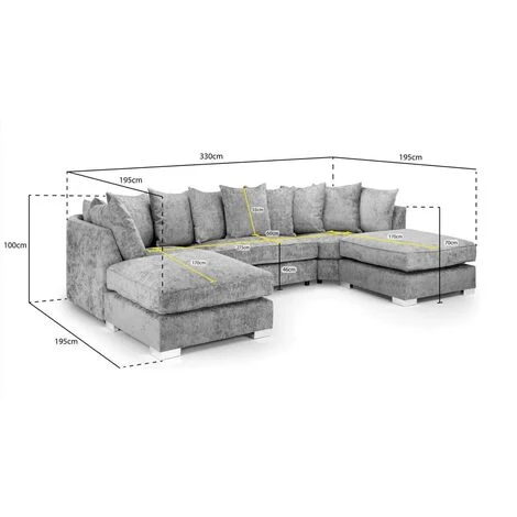 One Of the most desirable sofa. The u-shaped sofa stands out from the rest, it can easily be transformed from a u-shaped to a left-hand/right-hand by moving the footstools. The two large footstools that come with this sofa are detachable..