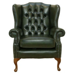 Chesterfield Mallory Flat Wing Queen Anne High Back Wing Chair UK Manufactured Antique Green