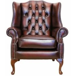 Chesterfield Mallory Flat Wing Queen Anne High Back Wing Chair UK Manufactured Antique Oxblood