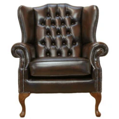 Chesterfield Mallory Flat Wing Queen Anne High Back Wing Chair UK Manufactured Antique Brown