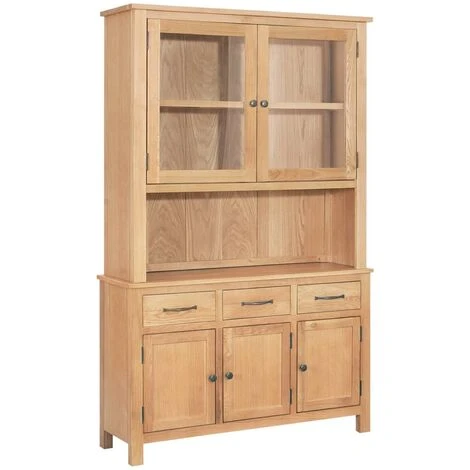 Add a rustic charm to your interior with our solid wooden desk hutch! It can be also used with a sideboard to make a great addition to your living room, dining room, study, etc. This highly functional hutch is expertly crafted from durable solid oak wood. Its 2 shelves with doors and 1 compartment provide ample space to store crockery in your kitchen or display photo frames, ornaments, collectables in your study or living room. Thanks to the mounting materials, the hutch can firmly stand on the sideboard. The desk hutch needs to be assembled.