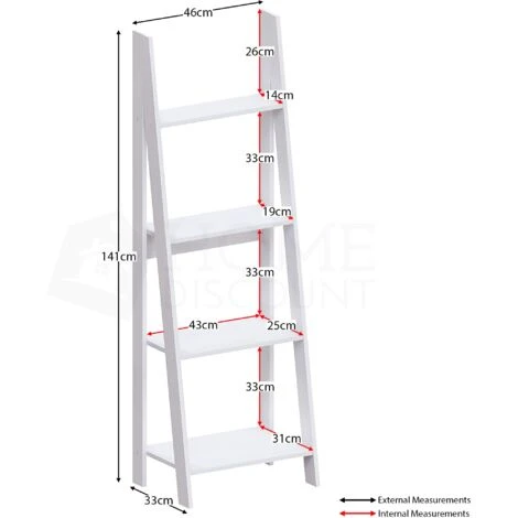 Offering this stunning new product with a modern stylish design, the 4 Tier Step Ladder Shelving Unit, White. This ladder shelving unit showcases modern minimal construction that lets the light to go through filling the room with an airy feel whilst offering plenty of storage space for your bedroom, living room & even bathroom. The bookcase features leaning lines and simple shelving structures, ideal for storing books, plants and even displaying photos. Made of durable wood, it is constructed with a cutting edge design that will be a great fit for any room interior.