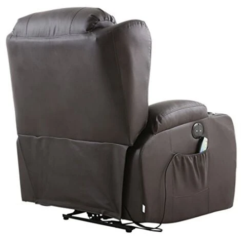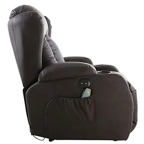 This Chair is combined with foam arms and pillow back support enables you to really sink into the recliner for hours. The supportive seating gives comfort and support where it’s needed the most, the padded winged backrest will make sure your head is supported should you decide to have a snooze. This model offers soft padding, excellent lumbar support and full chaise seating. Other features include heated seat, 8 point vibration massage, drink holders, front and side storage pockets