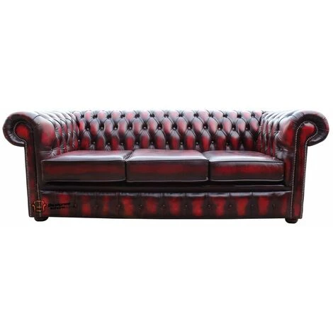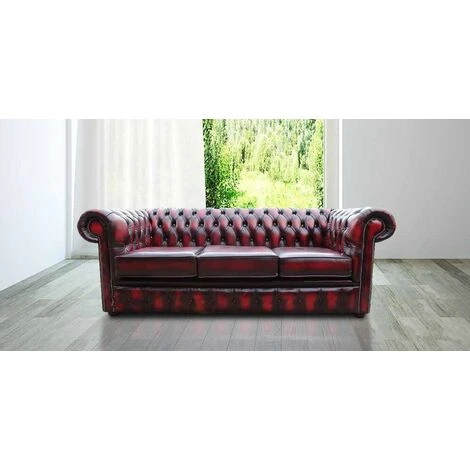 The Chesterfield London 3 Seater Sofa In Antique Oxblood Leather