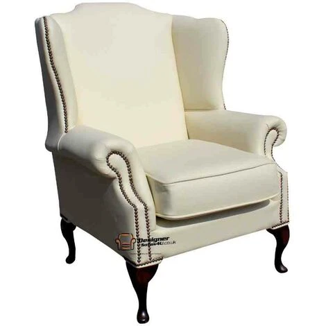 Our classic Winged High-Back Chesterfield Queen Anne Armchair with exposed hardwood leg detail. A very popular look in the Queen Anne style. High Back Chesterfield Queen Anne Wing Chair