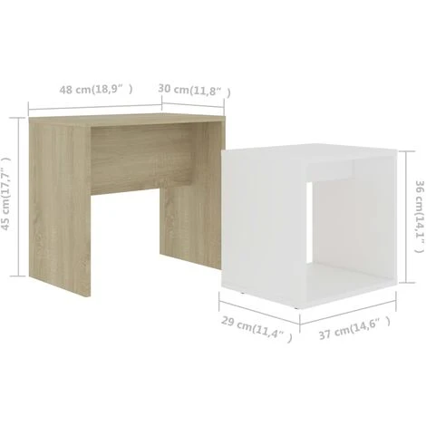 This side table set is made of quality engineered wood, making it sturdy and stable. The nesting tables are multifunctional. They can be used in the living room as a convenient surface to rest your drinks or any other necessities you need close at hand. The small coffee table, with its shelving-design, can offer you extra space for storing magazines, DVDs or other items. This set is space-saving as the smaller one can be hidden underneath the big coffee table when not in use. You can also bring one of them into your bedroom for use as a unique nightstand!