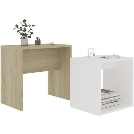 Our 2-piece coffee table set is the perfect alternative for small flats or any area with limited space. Its contemporary design makes this nesting table set a chic addition to your living room, bedroom or office.