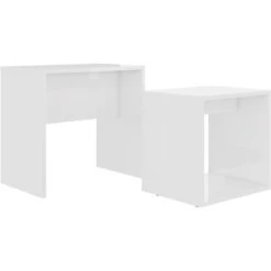 Coffee Side Tables Set Of 3,High Gloss Coffee Table,Nesting Tables,MDF And Glass,White And Grey
