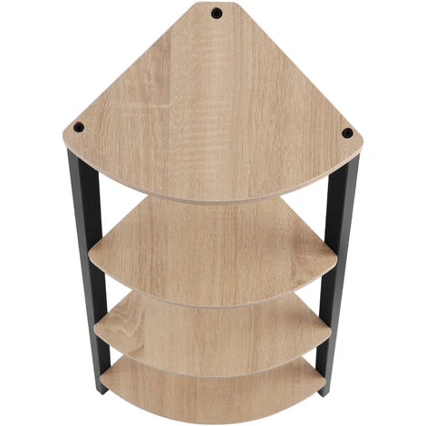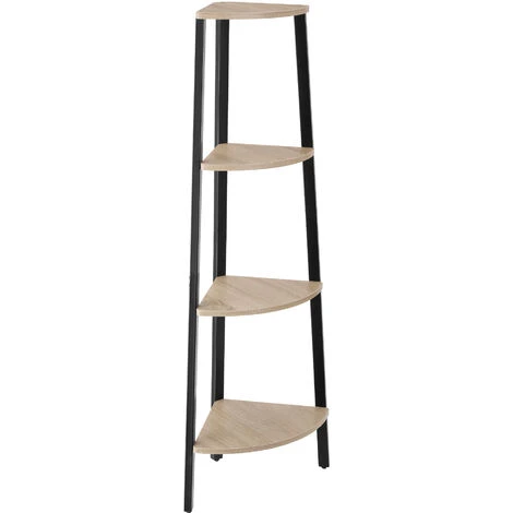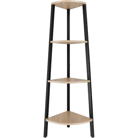 - No-frills corner shelving unit with four tiers