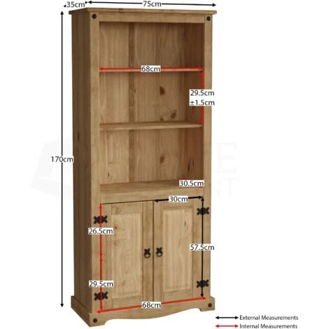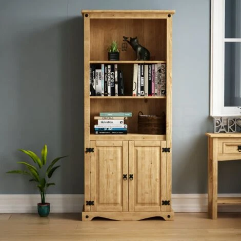 Home Discount offers this stunning new product with a modern stylish design, the Corona 2 Door Bookcase. Instead of piling up your favourite novels in messy, metre high stacks on your floor, give them a permanent home when you purchase this solid bookcase. The generous and attractive three-tier design with capacious cabinet underneath provides a plethora of space to organise your novels! Modern Mexican style bookcase is complemented with curved plinth at the bottom and black metal elements all over.