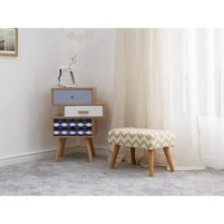 Livingandhome Square Modern Linen Upholstered Footstool Wooden Legs, Yellow