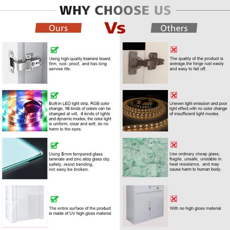 - Front panel,side panels are high-gloss,other panels are triamine board