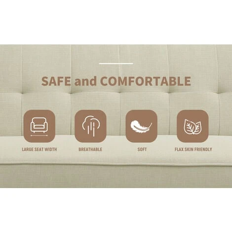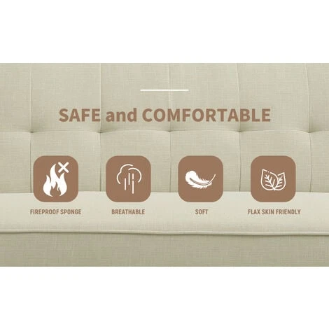High-Quality MaterialsThe surface of the sofa bed is designed with non-woven linen cloth,made of fireproof sponge that meets british standards,and the sofa legs are supported by rubber wood,which is strong,safe and comfortable