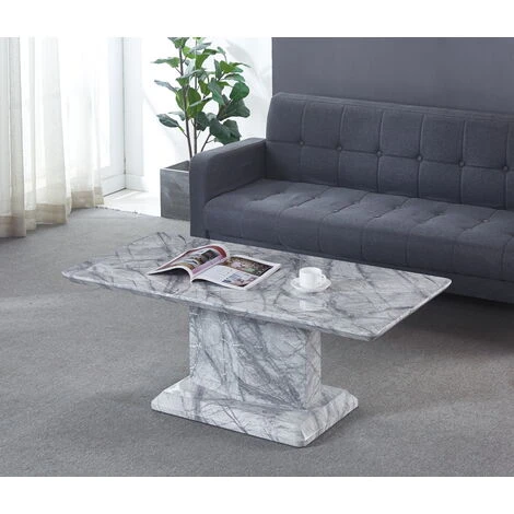 Stunning Design Pedestal Standa Marble Effect Laminated Grey Coffee Table. Gloss Finish Grey Coffee Table with Marble Effect Lamination Top to Bottom.