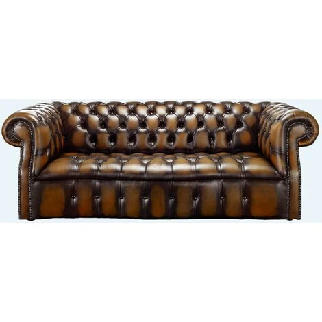 The Chesterfield Classic Sofa. The Chesterfield Leather Sofa with it’s unique Low Back Style, Deep Buttoned Arms and Back complemented with a Curved Buttoned Front Bder. The Scroll Fronted arms on the Chesterfield Leather Sofa are attractively embellished with lines of individual stud nails. An undoubted winner in any room from the cottage to the boardroom. A classic of its kind ;Traditional Vintage British Style.