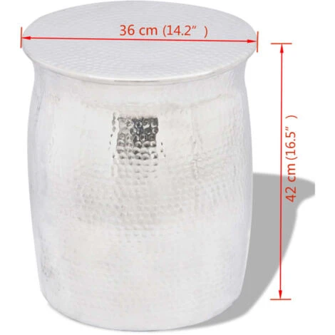 The stool/side table is made of high-quality aluminium with a polished finish, which makes it extremely durable. The attractive hammered finish adds a tactile texture to the stool.