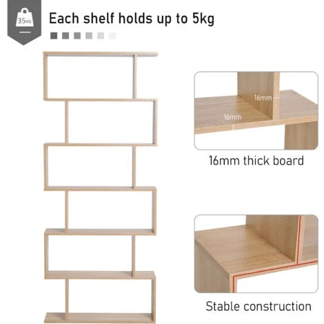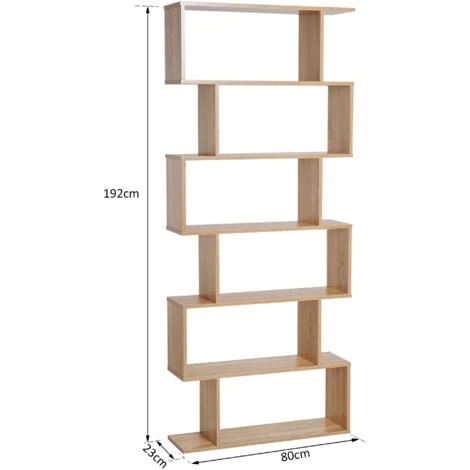 This beautiful modern S-shaped storage shelf will give you plenty of storage space in your hallway, living room, office, bedroom, and more! Made of Particle board of high quality, this shelf is resistant to scratches and shock. It has 6 shelves to organize a simple Books, DVDs, Photo Frames and all kinds of decorative objects. The clean and contemporary style integrates easily with your existing furniture and will come in handy no matter where it’s placed.