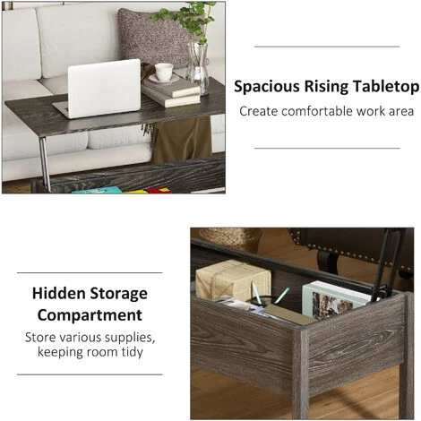 • Dimensions: 45H x 98L x 48Wcm. Tabletop lifted: 68Hcm. Storage space: 18.5H x 90L x 40Wcm. Legs: 23.5cm