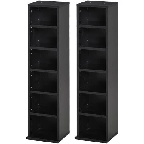 Display your coveted CD and digital media collection with pride – opt for this set of two shelves from HOMCOM. A six-compartment design, each unit can hold up to 102 CDs, giving you plenty of room for keeping everything together in a place. Made from particle board, the structure is solid and durable, and comes with wall fixing straps on the back, so it doesn’t fall over – making it safe for all homes. Double the organization for a tidy and matching home. Specifications: