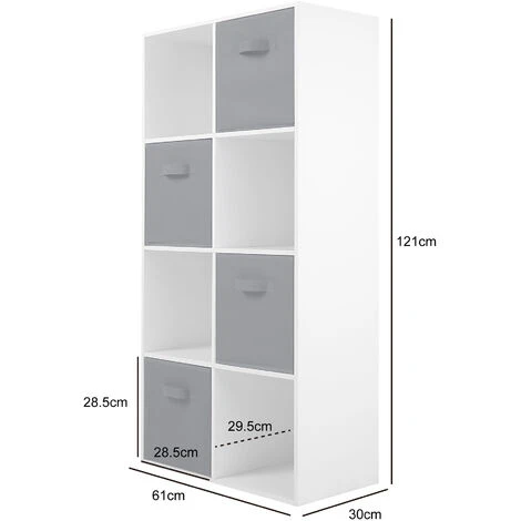 With eight boxes available, there is plenty of space to keep things tucked away in this 2×4 bookshelf. Its versatility means it can be used as living room storage, office filing cabinet or as extra dresser drawers in a bedroom wardrobe. Arrange the drawers as you like to maximise storage space. Display some items and keep others tucked away in the baskets provided with this furniture.