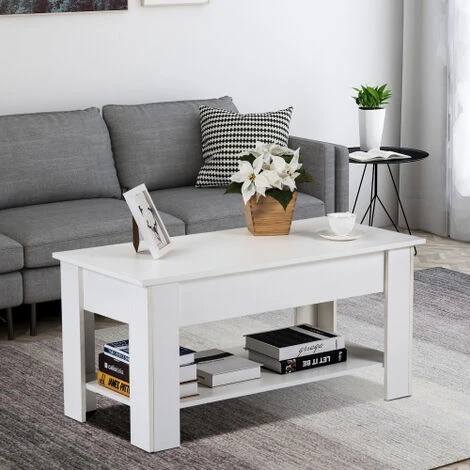 - Keep clutter tastefully out of view and neatly stowed away with the storage coffee table, featuring a built in lift table operated by sturdy metal spring loaded brackets. Smoothly lift and lock the table into place when you need an elevated
