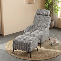 *Distinctive houndstooth patterned upholstery adds a statement piece to any home