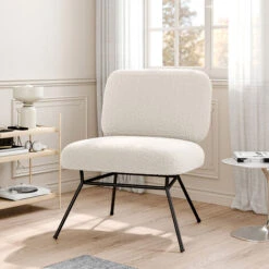 in Livingandhome, the inviting seat of this chair is upholstered in soft faux