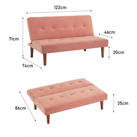 Our sleek sofa bed, with a solid wooden frame, brown wood legs and plush yet