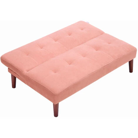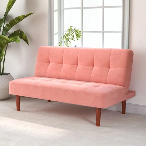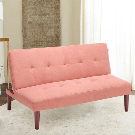 Our sleek sofa bed, with a solid wooden frame, brown wood legs and plush yet