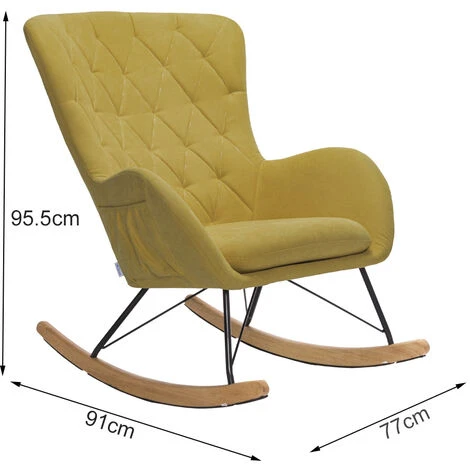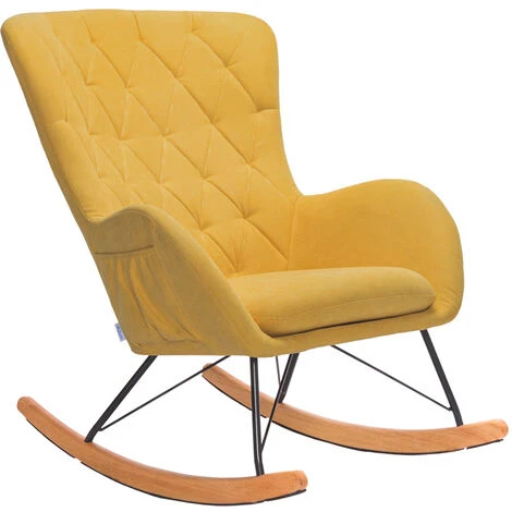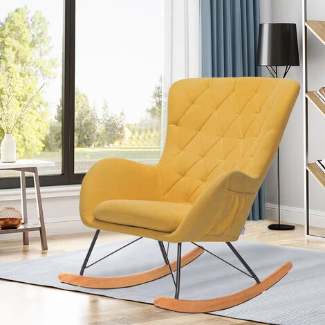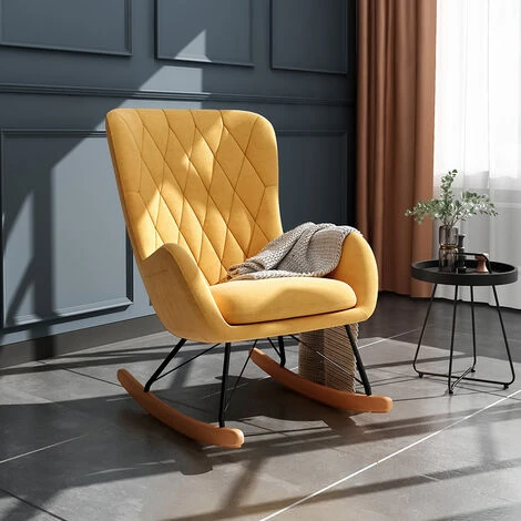 Swing in this beautiful fabric rocking chair. Its rounded shapes and its