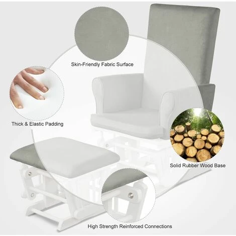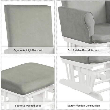 The glider with ottoman is made of solid wooden frame, which provides strong support and stability. The thick cushion has good elasticity and is not easily deformed, which can be used for a long time. With the smooth ball bearings, this glider gives you a gentle rocking motion. Besides, this rocking chair and ottoman set with large weight capacity is suitable for everyone, which allows reading, relaxing and napping.