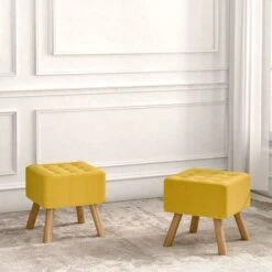 Melia Velvet Small Rectangle Pouffe, Ottoman Bench, Footrest, LUX Design, Button Detailed, Cream