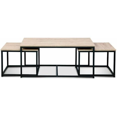 Featuring a rectangular table and 2 smaller square tables, this set is supremely versatile as they can be used as coffee tables or side tables. The compact square tables can be nestled inside the large table when not in use, freeing up space in your room. The sturdy metal frame and solid wooden top ensure a long life.