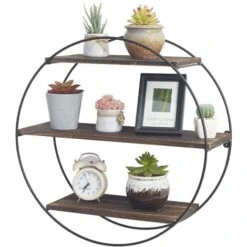 3 Layer Floating Wall Shelves Wood Geometric Decor Shelf Iron Frame Fit Bathroom