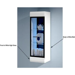 Glass Wall Display Cabinet With LED Lights Wall Unit White High Gloss Fever