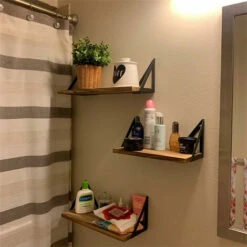 Set Of 3 Corner Wall Shelves Industrial Style Metal Wood Shelving Shelf Storage