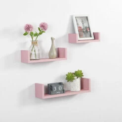 Set Of 3 U Shape Floating Wall Shelve Storage Display Shelf Blush