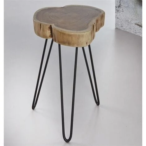 The Log side table is made of a solid 6 cm thick acacia wooden table top. This combined with a metal feet gives it a very robust and tough look. Do you dare placing this in your interior? Every table top is unique! The table top is made of a genuine tree trunk which gives this playful but very tough appearance.Â