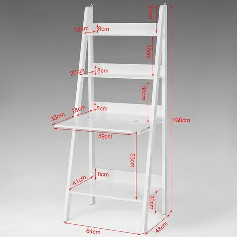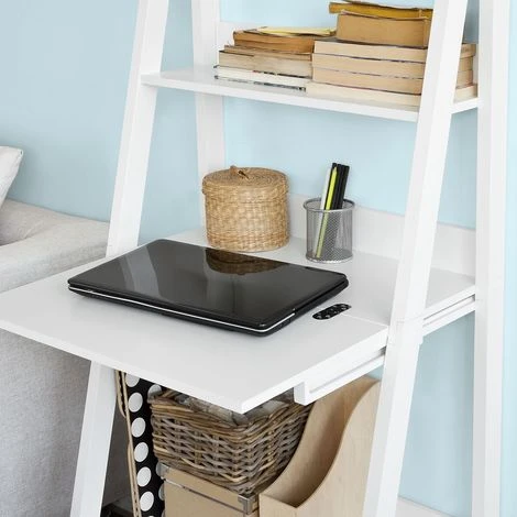 Simply elegant design storage display ladder shelf with desk and 3 shelves.