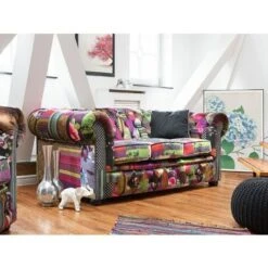 Classic Sofa 3 Seater Button Tufted Patchwork Purple Chesterfield