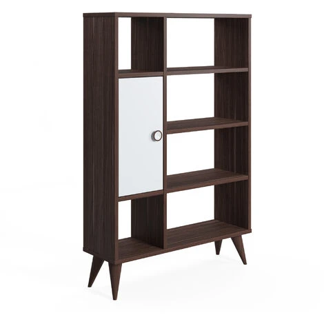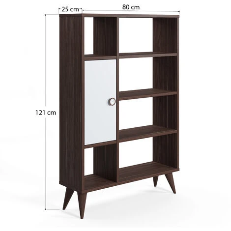 Ruumstore Soho wide Bookcase, 80*25*121 cm, natural oak and natural walnut colour, 4 Shelves Bookshelf with 1 Door, White and Natural Colours Together, Wood Frame Wood Legs. It has a easy assemble with minimum tools required. You can turn your narrow spaces into a large storage area. The Soho Bookshelf, which can be used both as a bookcase and as an extra storage space with its multi-shelf system, also draws attention with its small door cabinet on its small side. The cabinet design not only enables a stylish touch, but also brings functionality to living spaces. Offering a functional solution to small houses, Soho Bookcase will be the first choice of those who want to add a difference to their decoration.