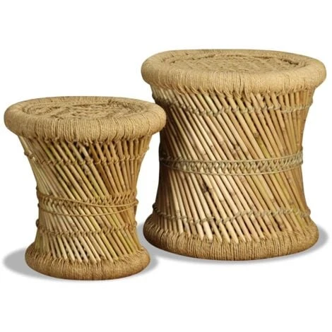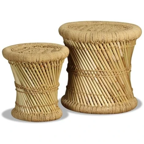 This set consists of two bamboo stools with an attractive, natural design. These handy stools will become a real eye-catcher in your dining room, garden or on your patio. Thanks to rustic, woven design and the use of natural materials, our stools can be used in various settings such as at home, in the gardens or in cafes. They can also be used as side tables.
