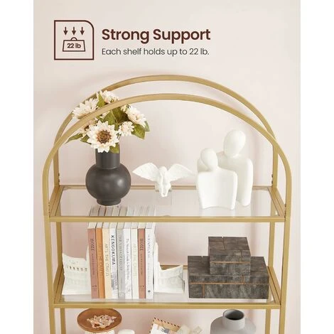 Glass is modern, exquisite, and simple. Combine it with the gold-coloured metal frame and arched design, and you get a shelf with style and functionality. Add it to your furniture in the living room, bedroom, or study to show off your trophies, collectibles, photos of memorable trips, and even your good taste in furniture.