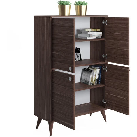 Ruumstore Vega Four Doors cabinet, 85*35*131 cm, opaque white, oak or walnut colour options cabinet with 4 Doors for extra Storage in living room, hallway, office or kitchen. It has a easy assemble with minimum tools required. You don’t need huge storage areas to store your belongings. You just need the right product to evaluate an area in a corner of your home. Standing out with its stylish and useful design, Vega Four Door Cabinet is both a functional and stylish product for the things you want to keep. You can turn the most beautiful corner of your home into a stylish storage space with its large interior volume.
