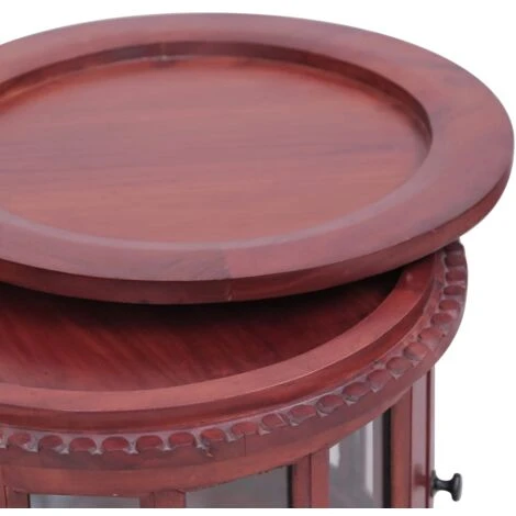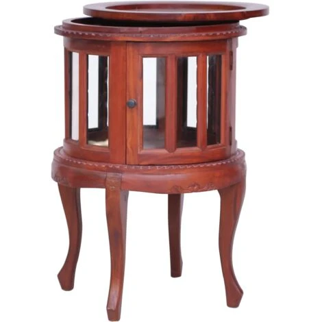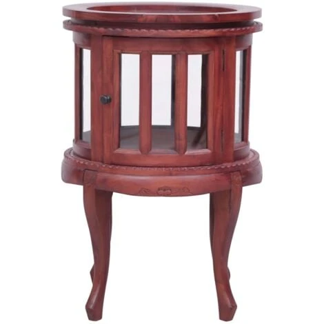 Made of solid mahogany wood with classical brown finish and glass, this solid wood vitrine cabinet is exceedingly durable and sturdy. Mahogany is a tropical hardwood, standing out with its beauty, durability and colour. The couch table offers storage space with 1 large compartment. Additionally, the sturdy tabletop is ideal for displaying decorative objects, photo frames, potted plants, as well as various other items. It is easy to wipe clean with a damp cloth. The side cabinet is easy to assemble.