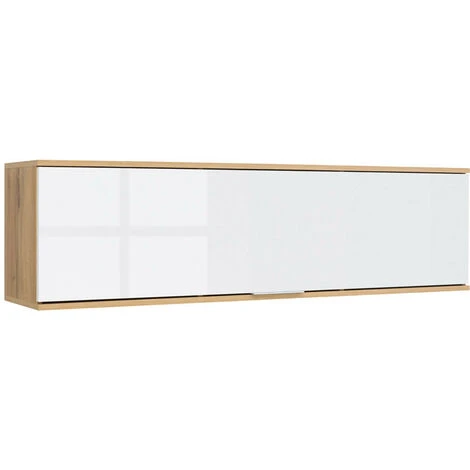 Modern Wall Cabinet Unit Storage Bedroom Living Room White Gloss Oak finish Zele
