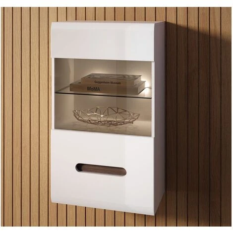 Modern Wall Mounted Glass Fronted Display Cabinet Unit with LED Lights