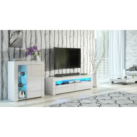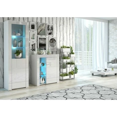 White Gloss Glass Display Cabinet Bookcase Shelving Unit Blue LED Light Lily