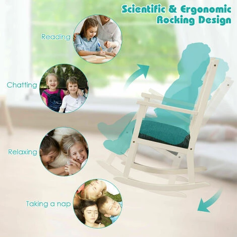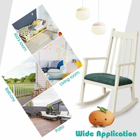 Made of high-quality natural rubber wood, this kids rocker has a sturdy construction and is not easy to deform. With the super soft and high resilience sponge cushion, the chair is comfortable and breathable. What’ more, perfect tilt angle of this child’s rocking chair not only provides the safety guarantee for babies, but also gives kids comfortable relaxation time through rocking. The wide backrest is ergonomic, which can support babies’ spine and make them form good sitting posture. In addition, this kids’ rocking chair is suitable for boys and girls aged 3-7 years old to sit, providing an independent space for kids to study and play.